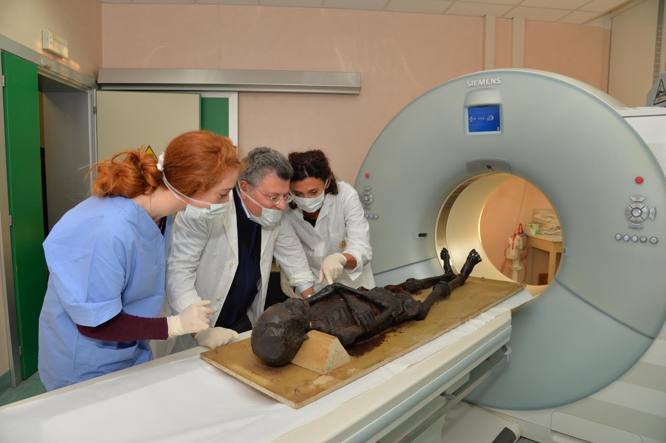 NUOVI STUDI – Dal 2013 la mummia è stata al centro di una serie di accurate ricerche con le più moderne tecniche di indagine medica e forense. Lo scopo è quello di restituirle l’identità, scoprire la sua età ed il periodo in cui è vissuta. Per questo è stata sottoposta alla tomografia computerizzata (TC) all’Ospedale San Matteo di Pavia e sono stati effettuati prelievi per analisi molecolari, tra cui quella del radio carbonio C14. Inoltre l’antropologa Chantal Milani ha studiato il profilo antropologico e lo specialista americano, Jonathan Elias ha ricostruito il volto questa donna vissuta millenni prima di noi. Infine è stata creata una copia 3D del reperto ad opera di Spazio Geco di Pavia.