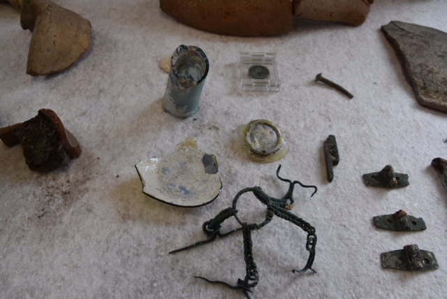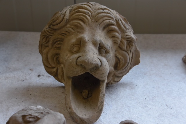 UN GRAN NUMERO DI REPERTI – Un aspetto inatteso delle indagini archeologiche finora condotte è stato il rinvenimento di un gran numero di reperti, quali antefisse e decorazioni fittili, frammenti di affreschi e di stucchi, frammenti di anfore e mattoni bollati, nella terra di risulta proveniente dagli scavi ottocenteschi e primo-novecenteschi svolti nelle adiacenze. Probabilmente all’epoca non c’era stato interesse al recupero di oggetti frammentari o non ricostruibili, che venivano pertanto scartati.