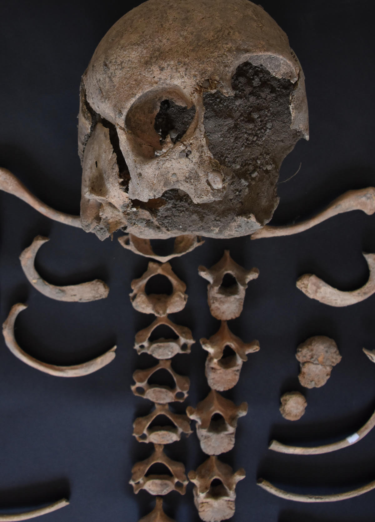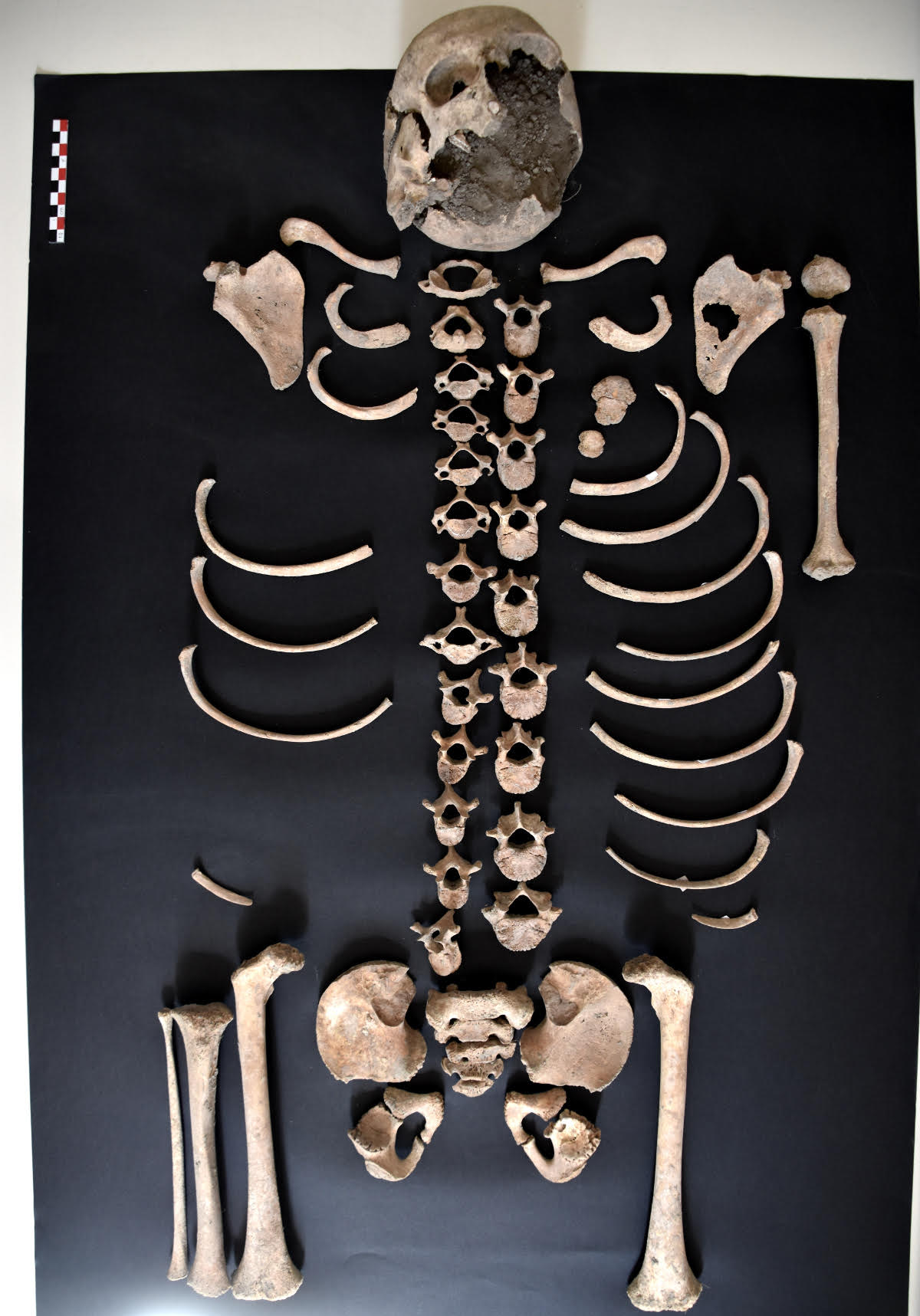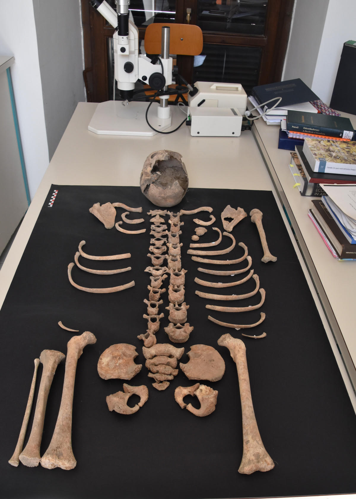 Lo scheletro è stato rinvenuto pressoché completo ad eccezione di una porzione del torace destro, della mandibola e di parte degli arti superiori e di arti inferiori e non appaiono lesioni dovute alle intercettazioni ottocentesche.