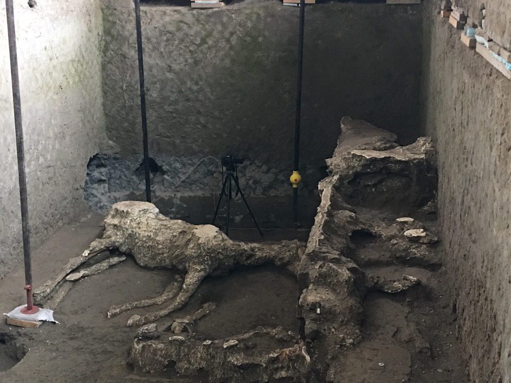 Nella prima fase di scavo era stata identificata una mangiatoia lignea di cui è stato possibile realizzare un calco, la sagoma integra di un cavallo e le zampe di un secondo animale . Le attuali operazioni di scavo, avviate nel mese di luglio, hanno messo in luce integralmente tale ambiente e hanno individuato la parte restante del secondo cavallo e un terzo equide con i resti di una ricca bardatura di tipo militare.