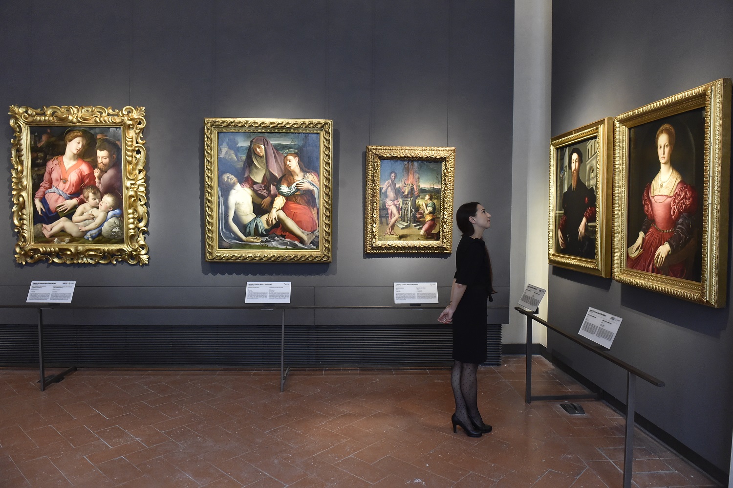 Vi è infine la zona dedicata alle Dinastie, dove i ritratti dei Medici di Bronzino (tra i quali anche la famosa ‘Eleonora da Toledo con il figlio Giovanni’) spiccano come gioielli sul fondo grigio scuro. La nuova sistemazione delle sale è stata concepita per migliorare la visione e la comprensione delle opere da parte del pubblico. Ciò è reso possibile anche grazie alle panchine disseminate lungo il percorso per consentire la sosta e il raccoglimento davanti ai dipinti. Un supporto alla realizzazione di questo straordinario, estesissimo intervento di allestimento è arrivato dai Friends of the Uffizi Galleries, che hanno donato 100mila dollari per la nuova Sala della Venere di Urbino, e altri 15mila dollari – generosamente offerti da uno dei membri dell’associazione, Trish Savides – per il restauro della ‘Sacra Famiglia’ di Lorenzo Lotto.