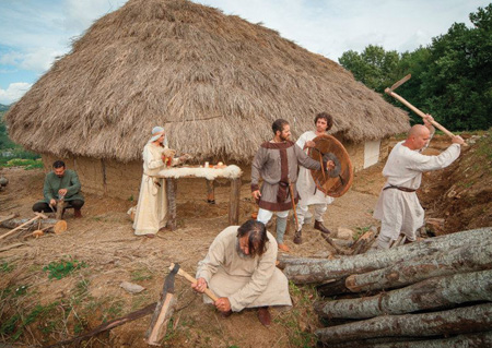 POGGIBONSI (SI), 31 gennaio 2020 (di Elena Percivaldi) – Immaginiamo di trovarci in un villaggio medievale in piena attività, popolato interamente dai suoi abitanti. Al centro, la grande capanna ospita la famiglia più importante, probabilmente di un funzionario carolingio con compiti militari, circondata da botteghe artigiane; accanto, in una capanna più piccola, una famiglia di contadini è intenta alle occupazioni quotidiane: coltivare i campi, badare agli animali da cortile, compiere i tanti piccoli e grandi lavori di costruzione e riparazione richiesti in questo piccolo e operoso angolo di Toscana abbarbicato in cima a un colle. Il profumo del pane che cuoce nel forno si diffonde nell’aria insieme ai colpi di maglio che provengono dalla fucina del fabbro, poco lontano; dentro le case, bambini e ragazzi si ricorrono schiamazzando davanti al focolare sempre acceso.