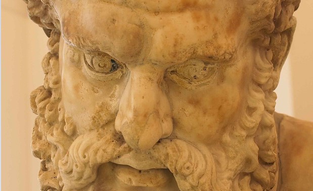 Che l’Ercole Farnese, capolavoro di Glicone di Atene risalente al III secolo realizzato su un originale di Lisippo, nonché una delle sculture-simbolo del Museo Archeologico Nazionale di Napoli, fosse in origine interamente dipinto è ormai un dato acclarato. Ma quali tonalità caratterizzavano esattamente il volto e il corpo marmoreo e monumentale (la statua è altra oltre 3 metri) del mitico eroe? Le analisi, condotte dagli studiosi del team “MANN in colours”, hanno rivelato negli occhi tracce di pigmento nero a base carboniosa. Quanto alla barba, “si presentava di un colore bruno/rossiccio: nelle parti originali sono stati individuati residui di pigmento con le stesse caratteristiche di quelli individuati sulla Leontè [la pelle del Leone di Nemea, da lui ucciso nella prima delle 12 fatiche, con cui è rappresentato ndr] e sulla roccia su cui poggia la statua”, spiega Cristiana Barandoni, responsabile scientifico di MANN in Colours. Probabilmente, anticipa Andrea Rossi, autore delle indagini, si tratta di ocra rossa o gialla. Più arduo invece stabilire il tono esatto della pelle: la presenza di ematite sui campioni prelevati dalle braccia e dal petto fa pensare che il pigmento rimasto non fosse quello definitivo, ma costituisse lo fondo per accogliere un’ulteriore tonalità, forse tendente a un colore bruno chiaro.
