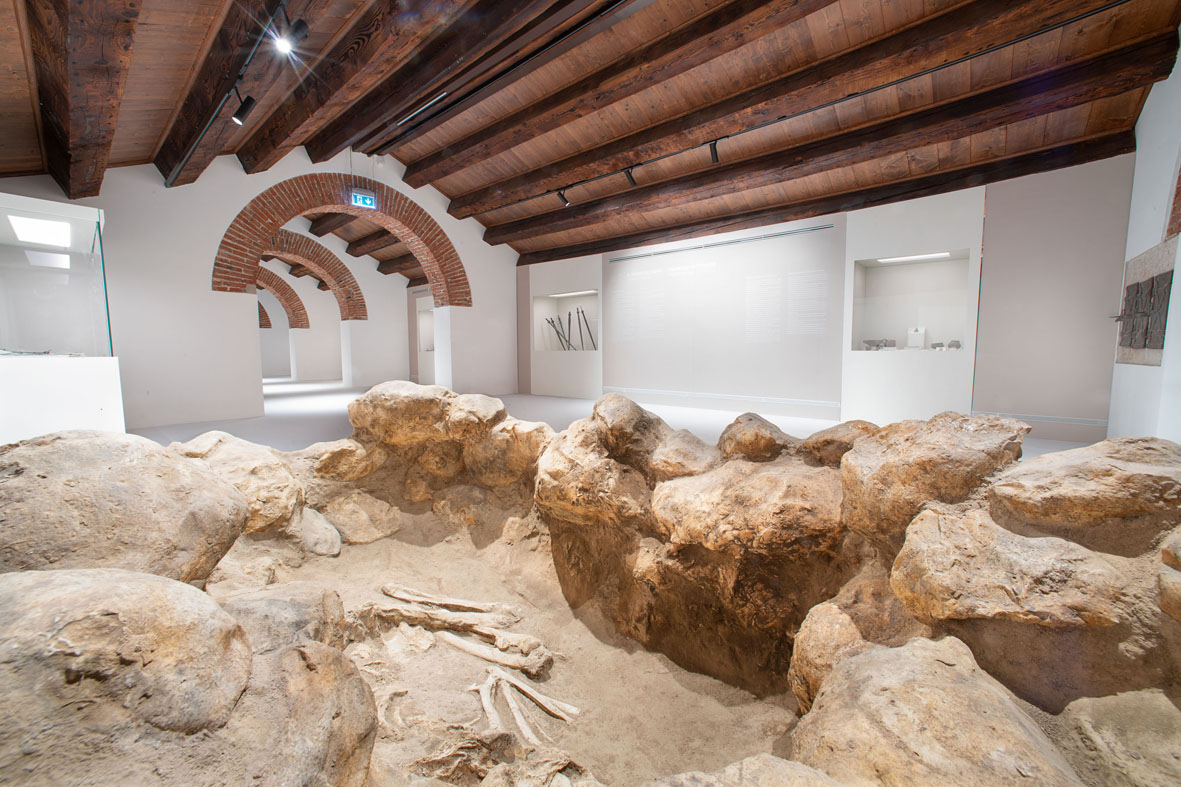 L’allestimento del nuovo Museo Archeologico, affidato all’architetto Chiara Matteazzi su progetto scientifico della Dott.ssa Federica Gonzato, è iniziato dall’ampio sottotetto dove hanno trovato collocazione le sezioni dedicate alla Preistoria e alla Protostoria, a documentare un lasso di tempo che prende avvio circa 100.000 anni fa e si dipana sino al primo secolo a.C. Il piano intermedio accoglierà invece i reperti dell’età celtica e romana, oltre ad uffici, biblioteca e spazi per incontri, mentre il piano terra è destinato a documentare l’età altomedievale.