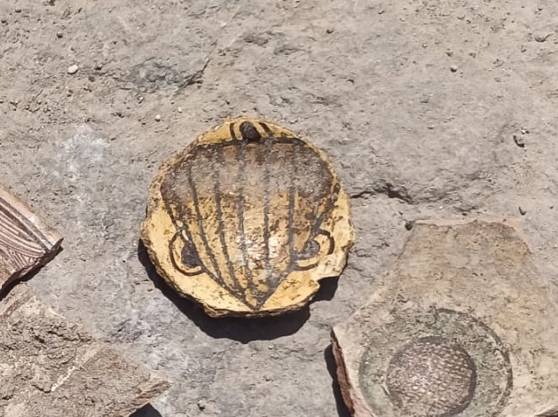 Nell’area meridionale della piazza sono venute in luce le strutture di un grande edificio rettangolare, con vani pavimentati a calce datati da ceramiche medievali di XII-XIV secolo, tra le quali il fondo di una scodella che riporta dipinto uno stemma, forse quello del Casato d’Aragona.