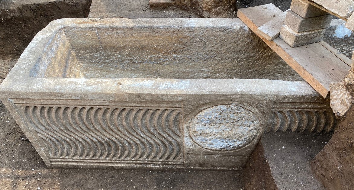 Ritrovato anche un eccezionale sarcofago in marmo greco con coperchio databile al III secolo d.C. La scoperta è avvenuta risistemando la rete idrica.