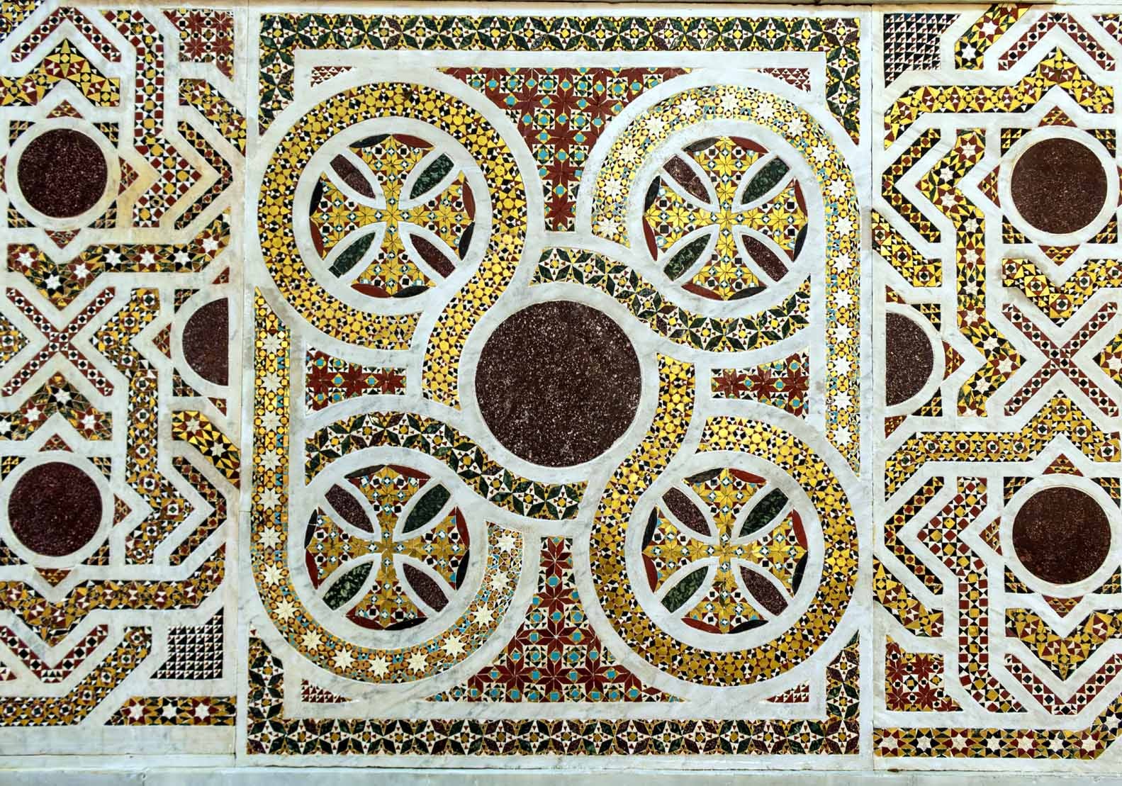 Tornano, pian piano, a splendere i tesori della Cattedrale di Palermo. I restauri sono partiti dalla zona presbiteriale dell’edificio, un’area dove coesistono elementi decorativi di diverse epoche, a testimonianza della complessa evoluzione costruttiva della chiesa. Recuperata la pavimentazione cosmatesca, realizzata con tessere marmoree che disegnano motivi geometrici, posta davanti all’abside maggiore.