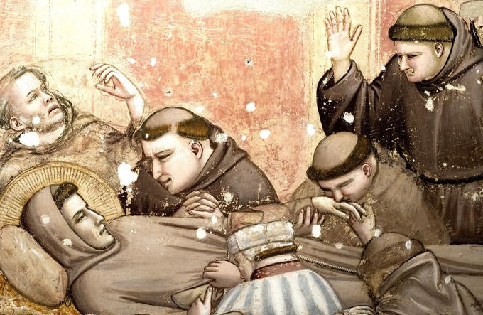 Immagine in apertura: Transito di San Francesco particolare dopo intervento di pulitura in attesa del ritocco